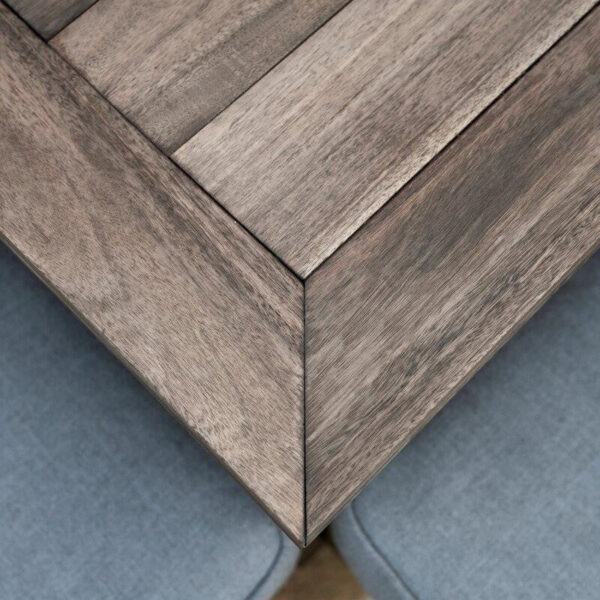 - Exotic, meranti wood is featured on the high traffic touchpoints of the table and armrests adding durability while offering a modern straight-grain composition