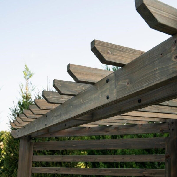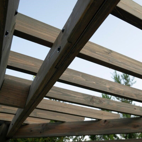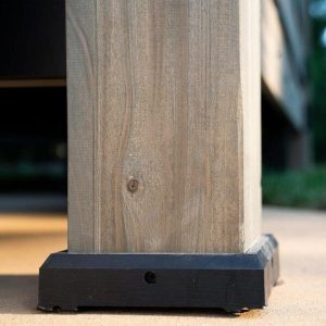 - Powder-coated steel furniture frame firmly attaches to wooden structure reinforcing structural support for added longevity