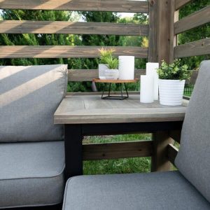 - Comfortable cushions include Sunbrella fabric giving you maximum comfort and proven, long-lasting trust in the outdoor seating