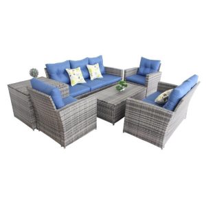 Enjoy your garden in the summer, this 7-seat rattan sofa. Equipped with exquisite tables and super soft seats, you can relax in complete happiness. It is practical and exquisite for dining and meeting, with all the materials needed for a stylish and comfortable atmosphere.