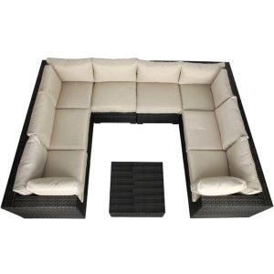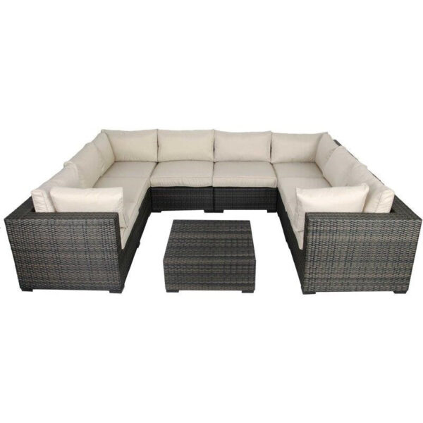 Whether youre soaking up the summer sun solo or entertaining friends alfresco, outdoor furniture is a must. Take this nine-piece sectional for example: designed to live outdoors, it is crafted from weather-resistant materials that wont mind UV light beaming down or rainstorms rolling through, so its perfect for placing on your patio. Versatile enough for a variety of sunny spaces, it features a clean-lined woven frame and cushions in a neutral solid hue.