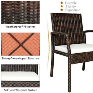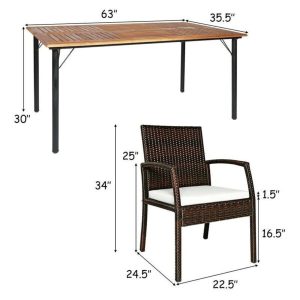 - This patio dining set is made of weather-resistant PE wicker and powder-coated steel, which has excellent rust resistance and durability to ensure year-round use. And the premium acacia wood table also comes with an umbrella hole for most umbrellas.