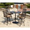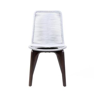 Have a fining dining session with friends and family outdoors on this amazing 5 piece dining set that includes 1 dining table and 4 dining chairs. Constructed from solid wood in a brown finish, the table features a round tabletop with concrete stone inlay at the center. The chairs incorporate a woven rope seat and backrest for seamless comfort.