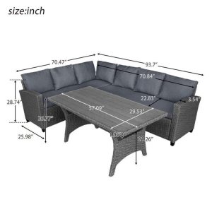 When the weathers nice, this dining set might just tempt you to take all your dining outdoors. Once placed on your patio or anchoring the deck, it provides the perfect spot to serve up poolside brunches and starlit dinner parties. Designed to take on the elements, it is crafted from weather-resistant materials. EXCELLENT QUALITY Constructed from a strong galvanized steel frame and commercial grade hand woven weather-resistant PE rattan wont rust or fade. Its a handsome d??cor to your patio, garden, park, or yard. ATTRACTIVE & PRACTICAL Modern and stylish lines and the black tempered glass tabletop make this wicker dining set look fashionable and add the beauty for your courtyard. Deep armchair with soft padded cushions to provide a cozy seating experience. Enjoy a good time with your family and friends