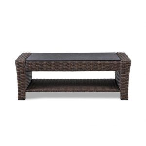 Create the perfect space for family and friends to enjoy the outdoors with this 4-piece outdoor seating group. Inspired by a modern classic with a bold fresh design, the loveseat and chairs deep seat and slightly flared arms encourages relaxing on the porch or sitting by the pool. Featuring a unique painted tempered glass that resembles a beautiful marble like design and crafted with a durable steel frame wrapped in resin wicker and upholstered plush cushions. Set includes one (1) Loveseat, two (2) Arm chairs and one (1) Coffee table.