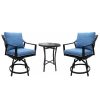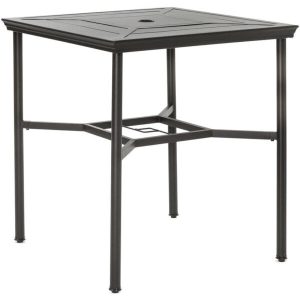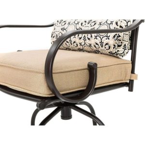 Spend more time outdoors with the Montclair 5-piece high-dining patio set from Hanover. This space-friendly dining set includes four swivel chairs and a 33-inch square dining table. The sleek, modern frames are forged out of heavy-duty steel and treated with a multi-step finish for the ultimate outdoor protection. Items within the Montclair Collection are designed to be durable, functional, and timeless. Designer details include curved backrests, elegant curling arms, and swivel-action chair bases that can sweep guests off their feet into a full 360-degree spin. Each chair is topped with thick foam cushions and pillows that allow you to entertain your guests in fashionable comfort. The fabric is soft to the touch, yet durable enough to resist moisture, stains, and UV harm. Entertain in style and comfort all year long with the Montclair Collection.