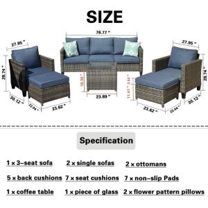 - Sofa; Table; Chair; Ottoman; Cushions; Pillow