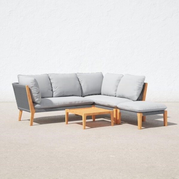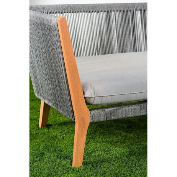 Both refined design and durability. It is a perfect match for every outdoor space and will give an elegant touch for your patio or garden. High quality certified wood in the teak finish is the main material of this outdoor furniture. Resistance to humidity and UV radiation makes products durable over the years. All the wood furniture in use only Eucalyptus wood with a teak finish and have 100% FSC certification. The frame is made of aluminum and is complemented with delicate synthetic rope details. The genetic care, the correct plantation, well-conducted forest management and the drying of the wood with programs developed for this, confer to the continuity, productivity, and quality not possible to the essences harvested in native forests.