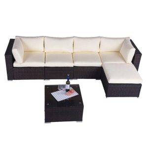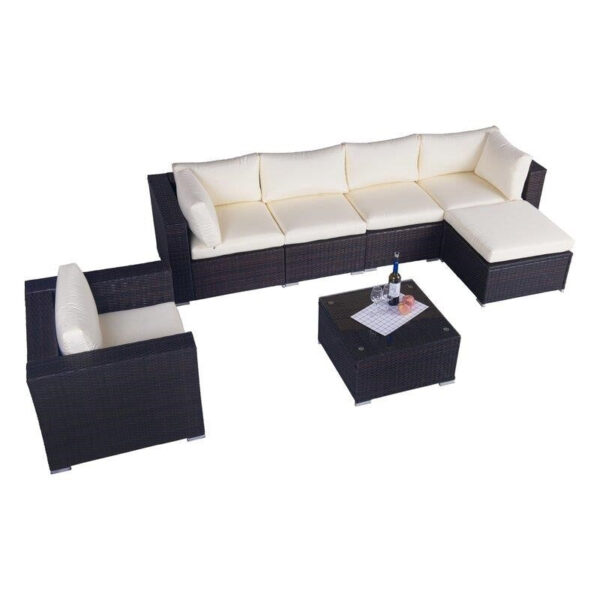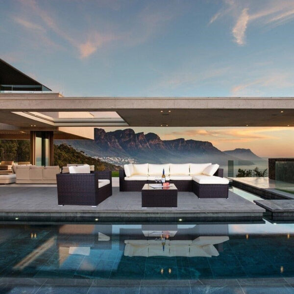 This moveable design allows you to adjust the chair to make the shape you like. This contemporary outdoor sectional sofa comes with enough room to seat 4-6 friends comfortably with a table to hold food and drinks.