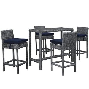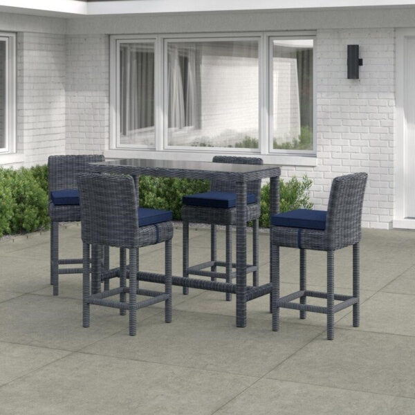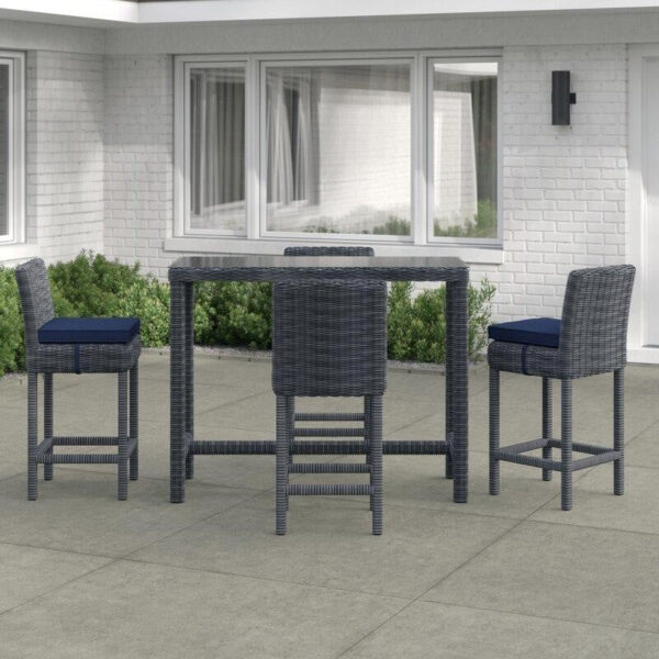 Experience the outdoors with exceptional comfort and quality. This collection offers an exquisite 2-tone synthetic rattan weave, plush all-weather cushions with industry-leading Sunbrellafabric, UV protection, and a sturdy powder-coated aluminum frame. Featuring rounded arms and an elegant modern look, this collection is an avant-garde outdoor sectional series well-equipped for enhancing patio, backyard or poolside gatherings. This installment of the series is an outdoor patio pub set.