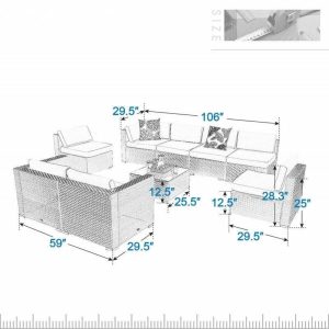 This patio sectional furniture set with a modern low back design is crafted with strong powder-coated steel and all-weather handwoven rattan, matching high-density olefin fabric cushions. Durable and stable for your outdoor, patio, deck, backyard, porch, and even pool use.
