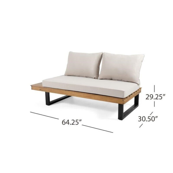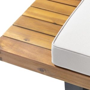 Refresh your outdoor space with a sectional set of stunning charm and comfort. This minimalistic set perfectly combines acacia wood and water-resistant cushions to create the outdoor lounge space of your dreams. Featuring a delightful V-shape and built-in side tables, our sectional set offers plenty of space for you to conveniently place your chilled drinks and snacks, allowing you to lounge outside all summer. Finished with a classic slat-top coffee table, this set will be your to-go spot for some outdoor relaxation.