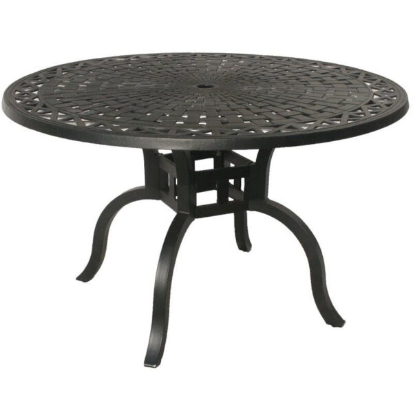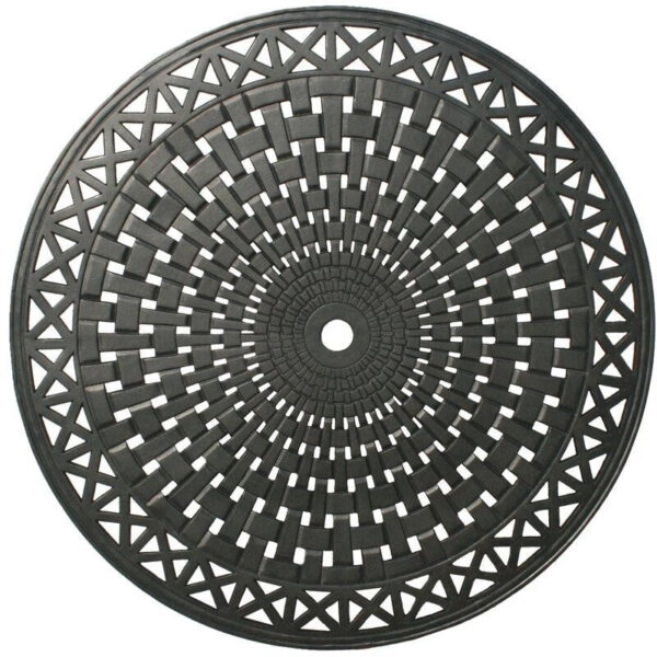As part of this collection, this Otsego 5 Piece Aluminum Counter Height Bar Set consists of one table and four swivel stools. The table with picturesque ornamented motif table top with an industry leading 2; diameter opening to accommodate even the largest umbrellas. The table base features four slightly curved sturdy aluminum legs. Four all-weather aluminum matching counter high swivel bar stools are 360 degree swivels. These stools also provide seat cushions-complete with 100% UV protected sunbrella brand cushions and zippers covers in canvas teak for elegant style and easy color coordinating. Easy to use hand ties secure the cushions to the frames. This set makes a great addition to existing outdoor furniture.