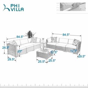 This patio sectional furniture set with a modern low back design is crafted with strong powder-coated steel and all-weather handwoven rattan, matching high-density olefin fabric cushions. Durable and stable for your outdoor, patio, deck, backyard, porch, and even pool use.
